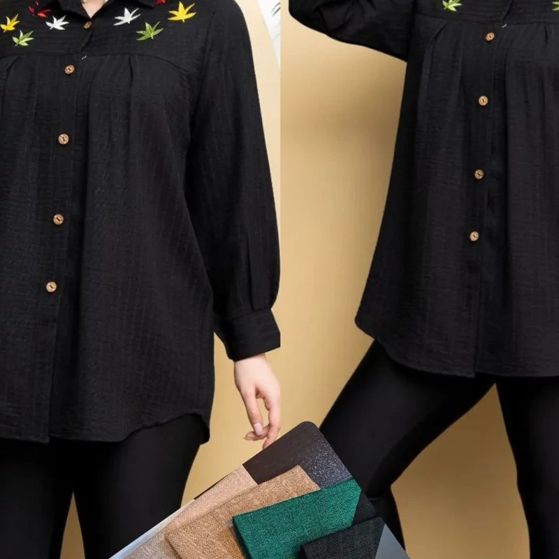 شومیز شانتون ساده 💞 جنس ژاکارد درجه یک💥 کیفیت فوق العاده💯 بسیار خوش پوش💖 قد 80🤌 دور سینه حدود 120👌 دارای رنگبندی💕 مشکی،شکلاتی🖤🤎